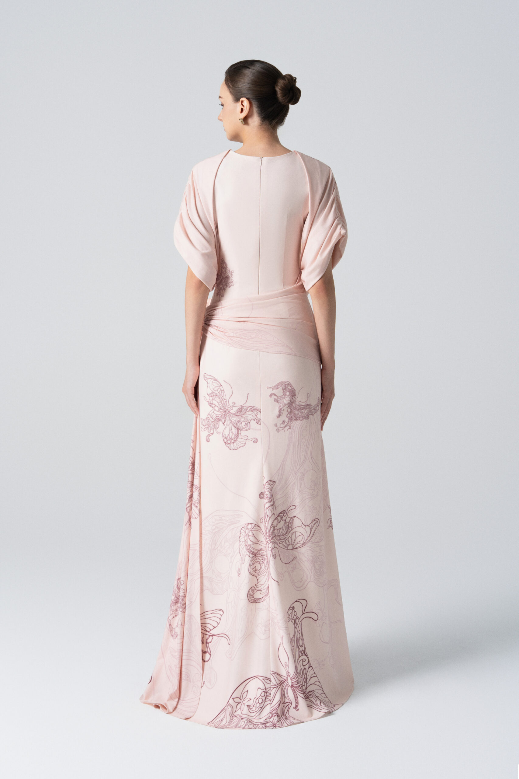 Amethyst Glow Fishtail Dress in Pale Peach