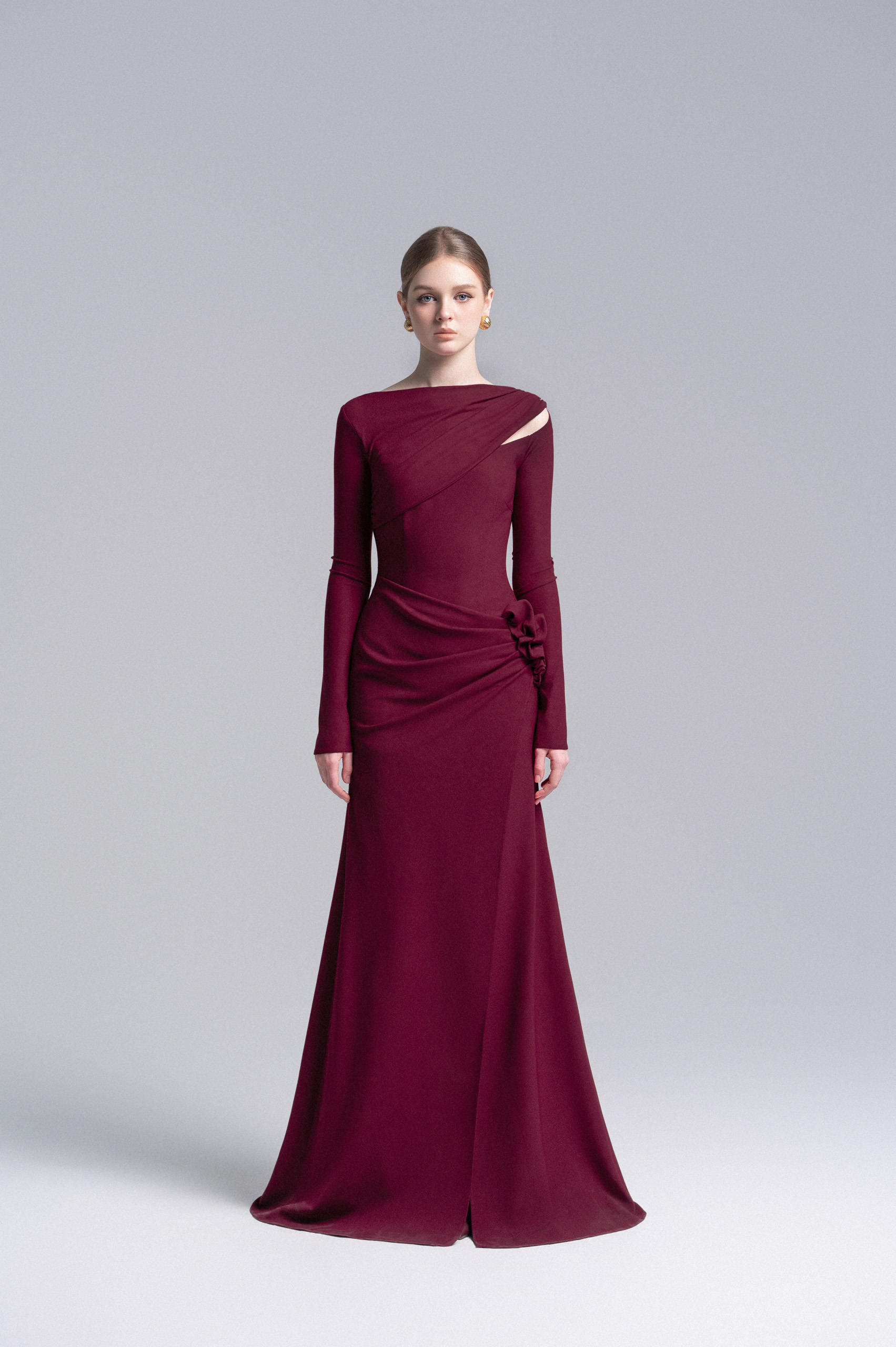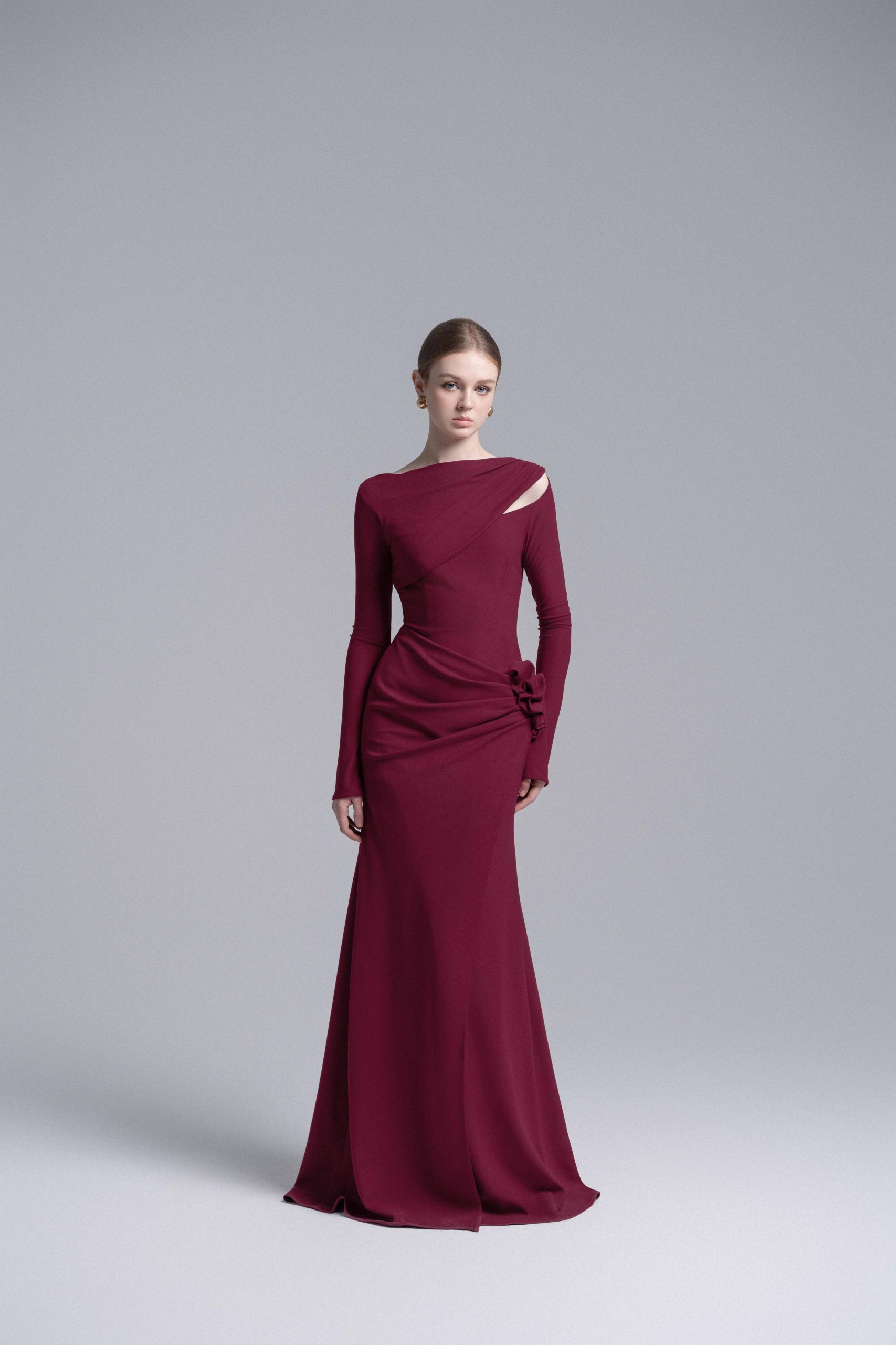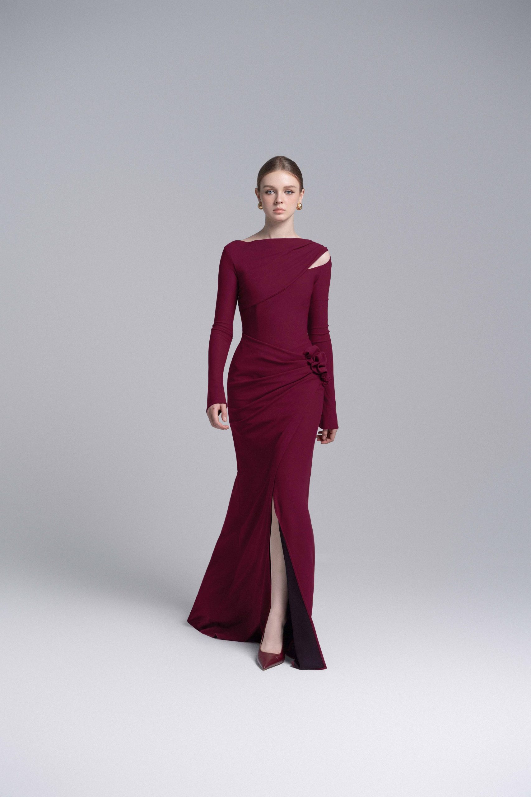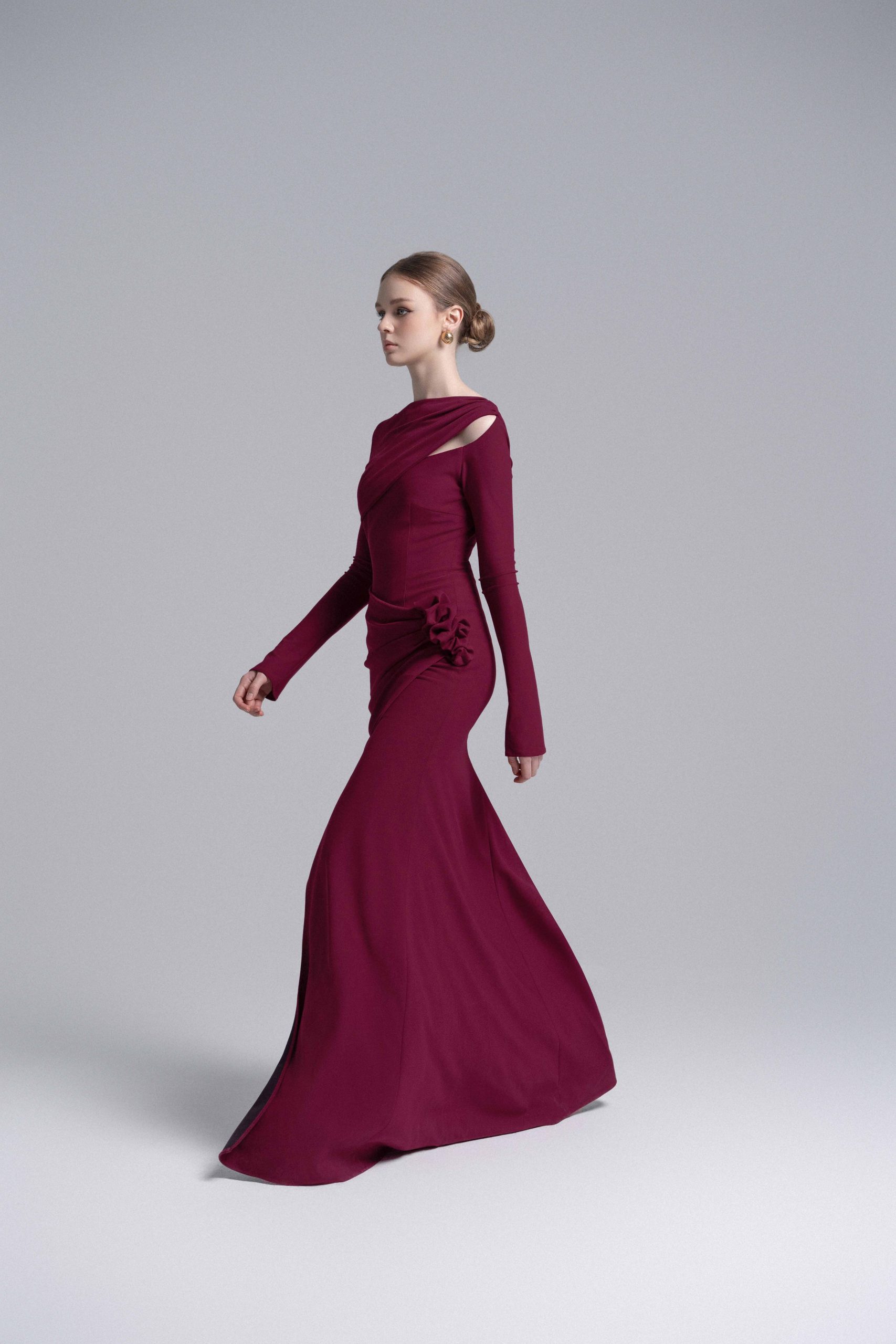 Claret 3D Floral Mermaid Dress