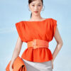 This summer is definitely indispensable in her wardrobe with orange items like Orange Boat-neck Blouser.