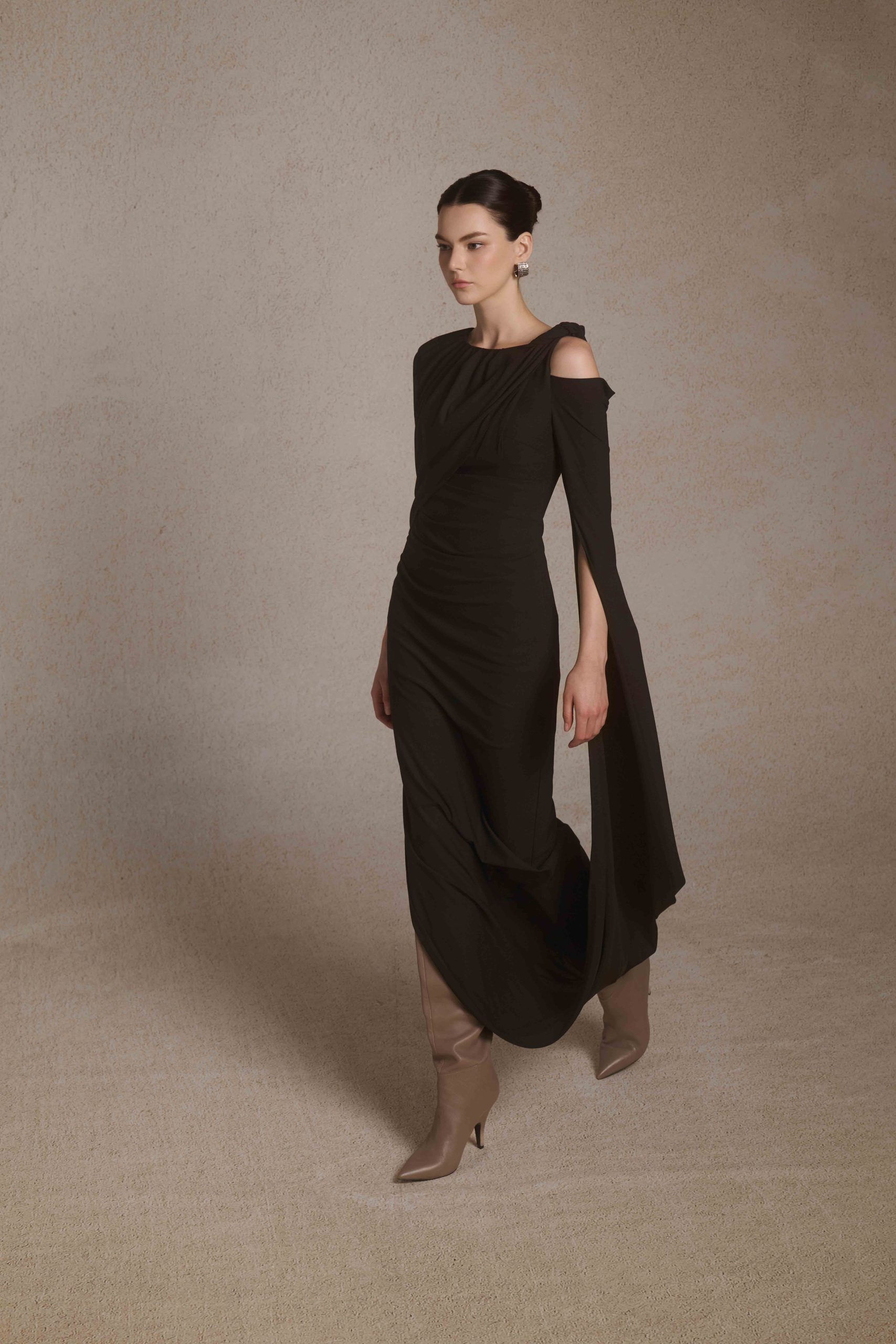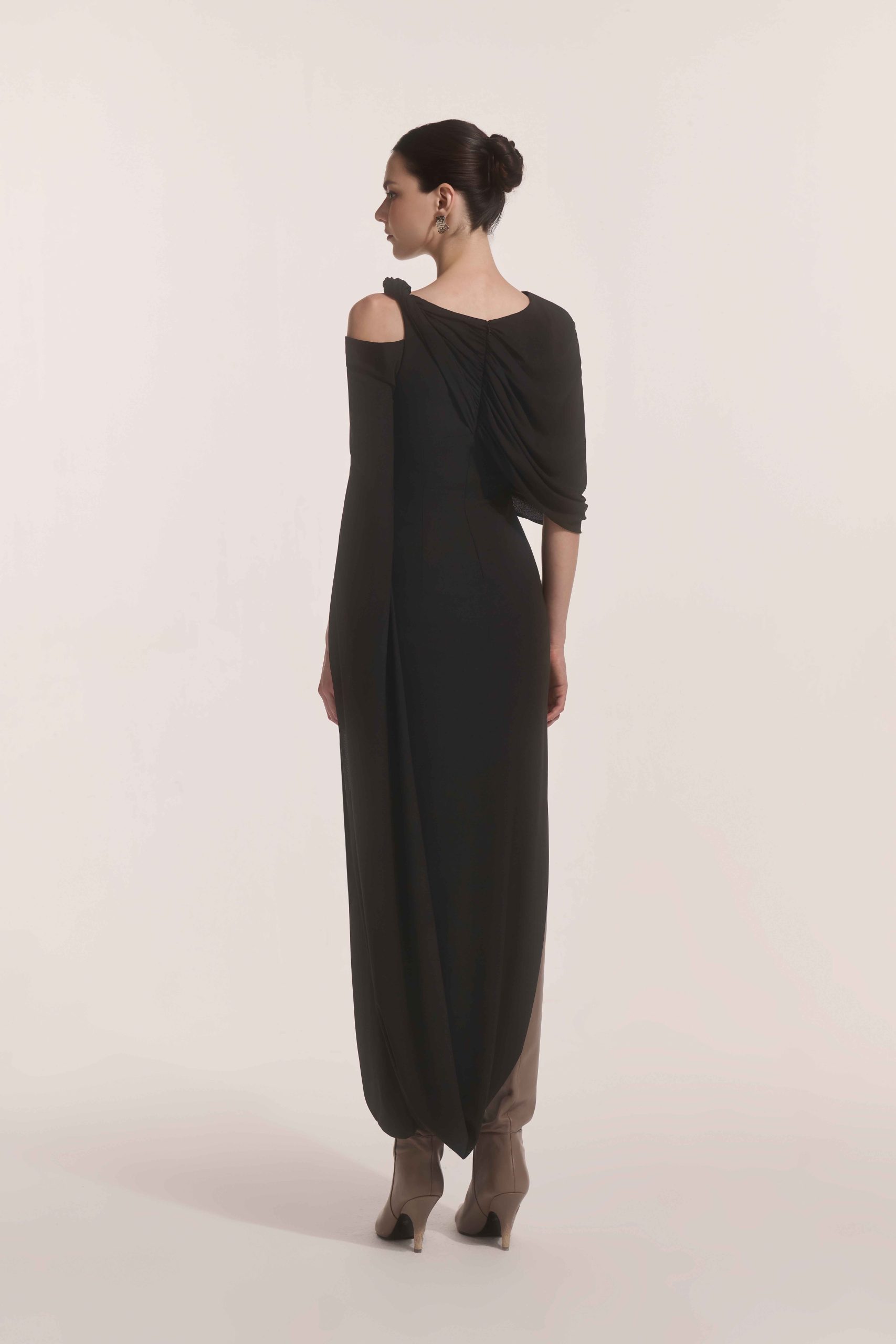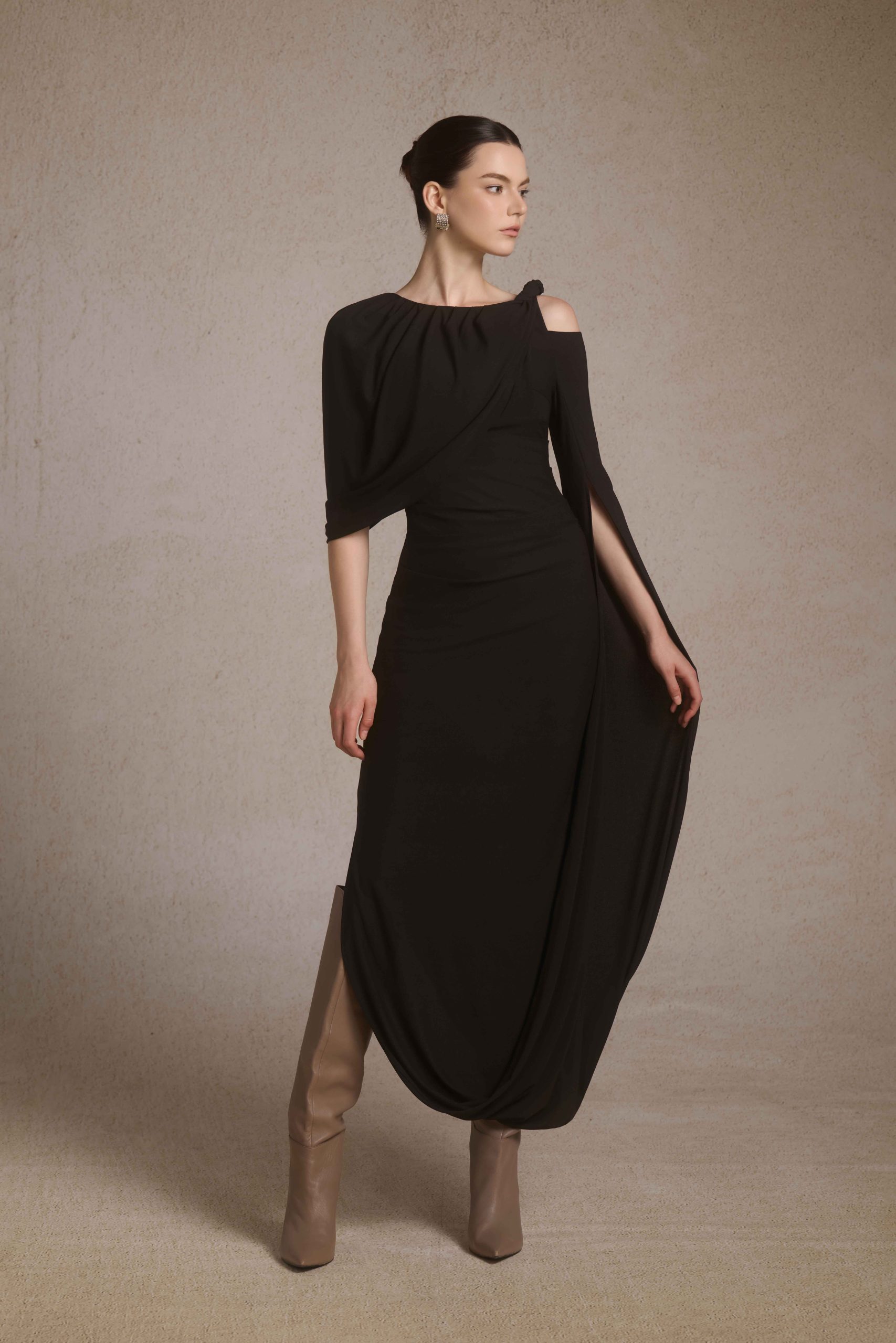 Orion Draped Shoulder Dress in Black